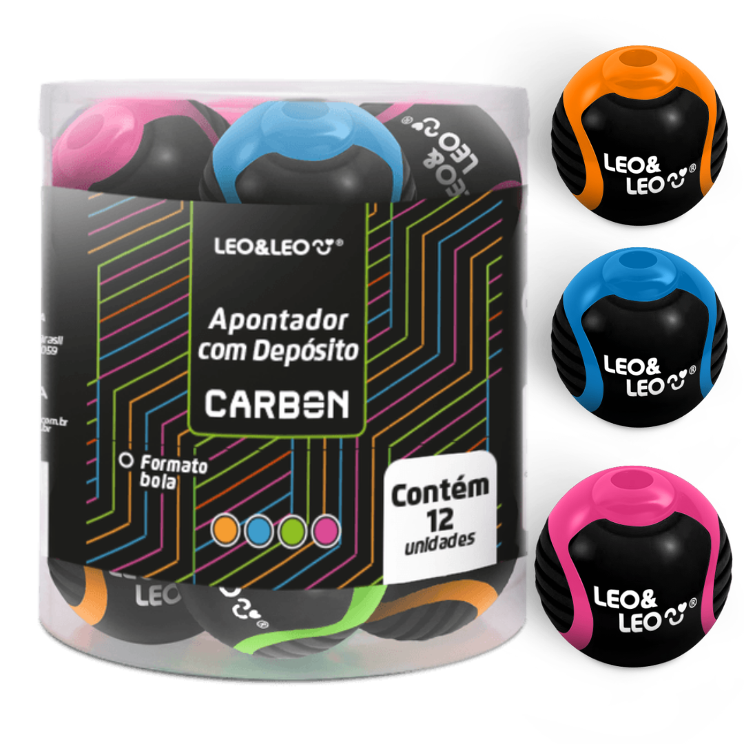 O Apontador Bola com Depósito Carbon Line - Pote com 12 Unidades Leo&Leo vai deixar a hora de estudar e criar ainda mais redondinha.
