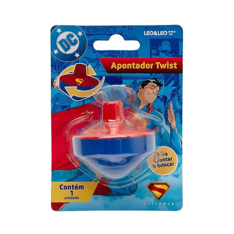 Com superpoderes de afiar lápis e de brincar. Assim é o Apontador Twist com Depósito Superman - Blister com 1 Unidade Leo&Leo.