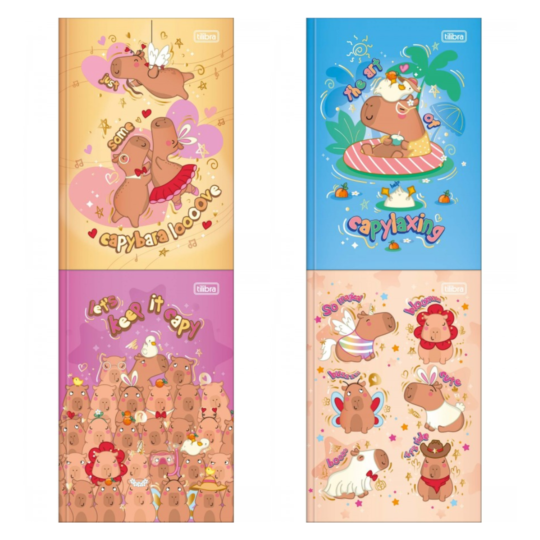 O Caderno Brochura Capa Dura 1/4 Bunnyfly 80 Folhas da Tilibra é perfeito para você que busca uma opção para organização da rotina de estudos com visual com ilustrações divertidas de capivara.
