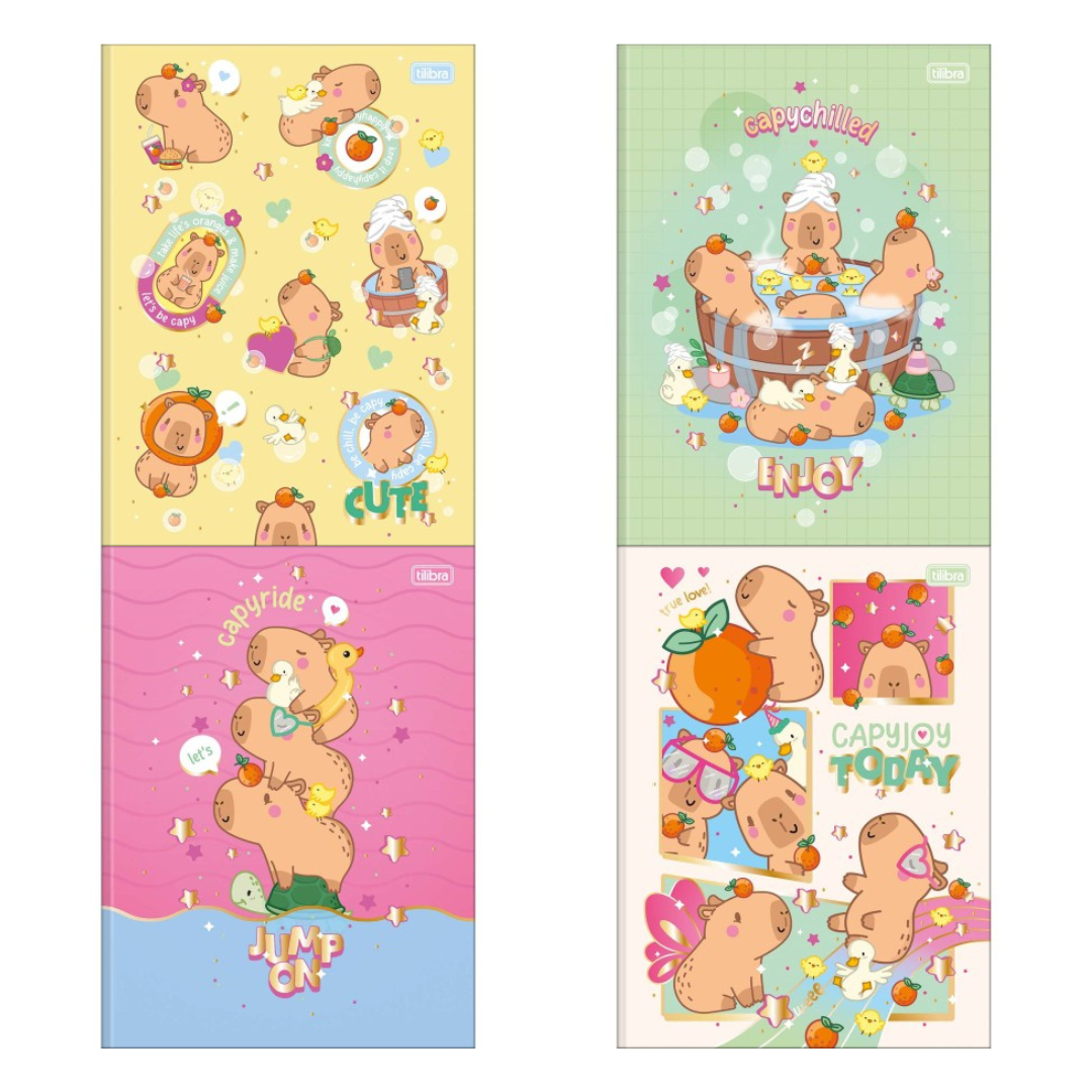 O Caderno Brochura Capa Dura Universitário Capyclub 48 Folhas da Tilibra é perfeito para você que busca uma opção para organização da rotina de estudos com visual com ilustrações divertidas de capivara.