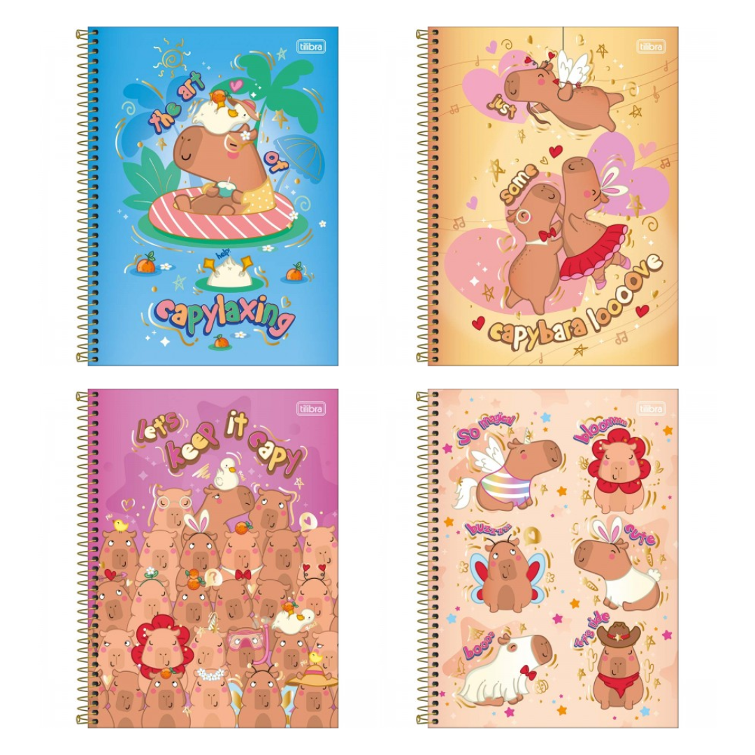 O Caderno Espiral Capa Dura Universitário 1 Matéria Capyclub 80 Folhas da Tilibra é perfeito para você que busca uma opção para organização da rotina de estudos com ilustrações divertidas de capivara.