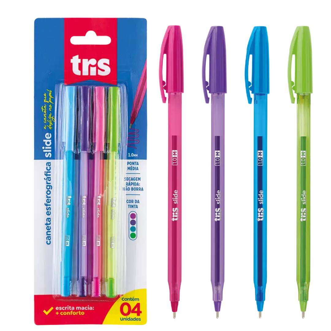 Caneta Esferográfica Slide Fashion - 1.0mm - Cartela C/4 un - Tris