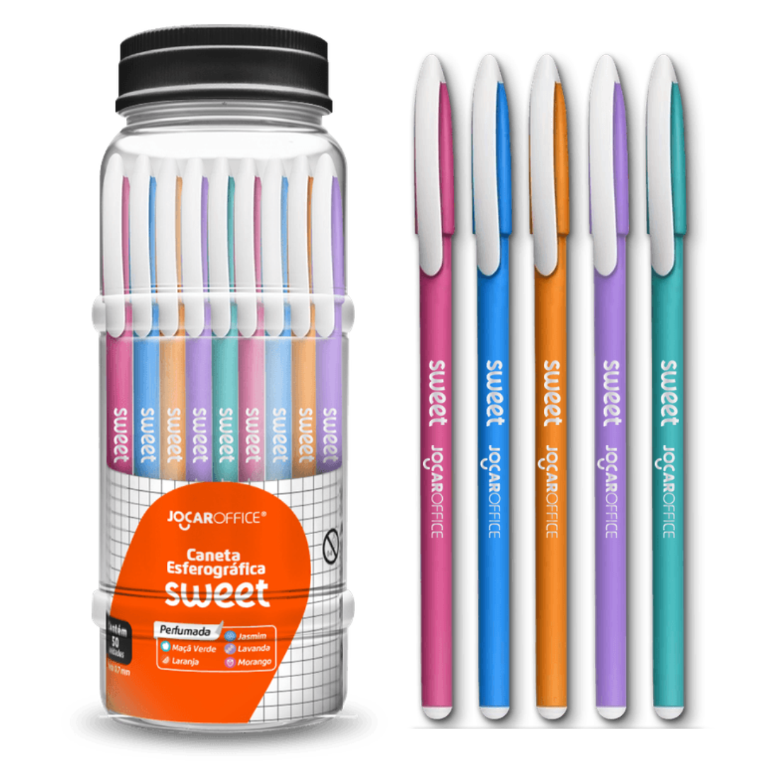 Escrever tem um sabor especial, e agora também um aroma, com a Caneta Esferográfica Perfumada Sweet Ponta 0.7 - Pote com 50 Unidades Jocar Office. Ela vai perfumar sua criatividade com muita originalidade.
