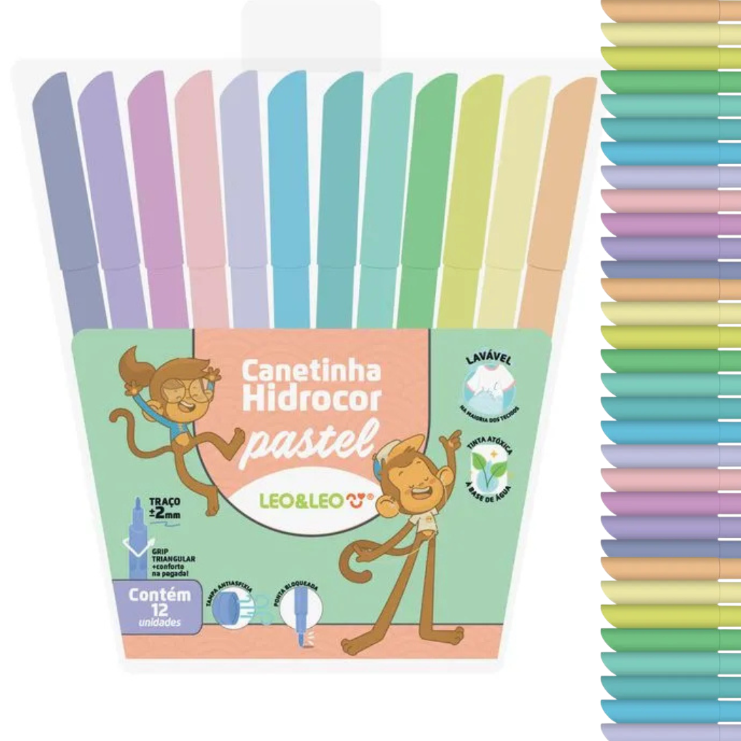 A criatividade das crianças vai ganhar novos tons com o Hidrocor Tons Pastel - Estojo com 12 Unidades Leo&Leo, pois as cores suaves e delicadas vão despertar a imaginação nos pequenos artistas.