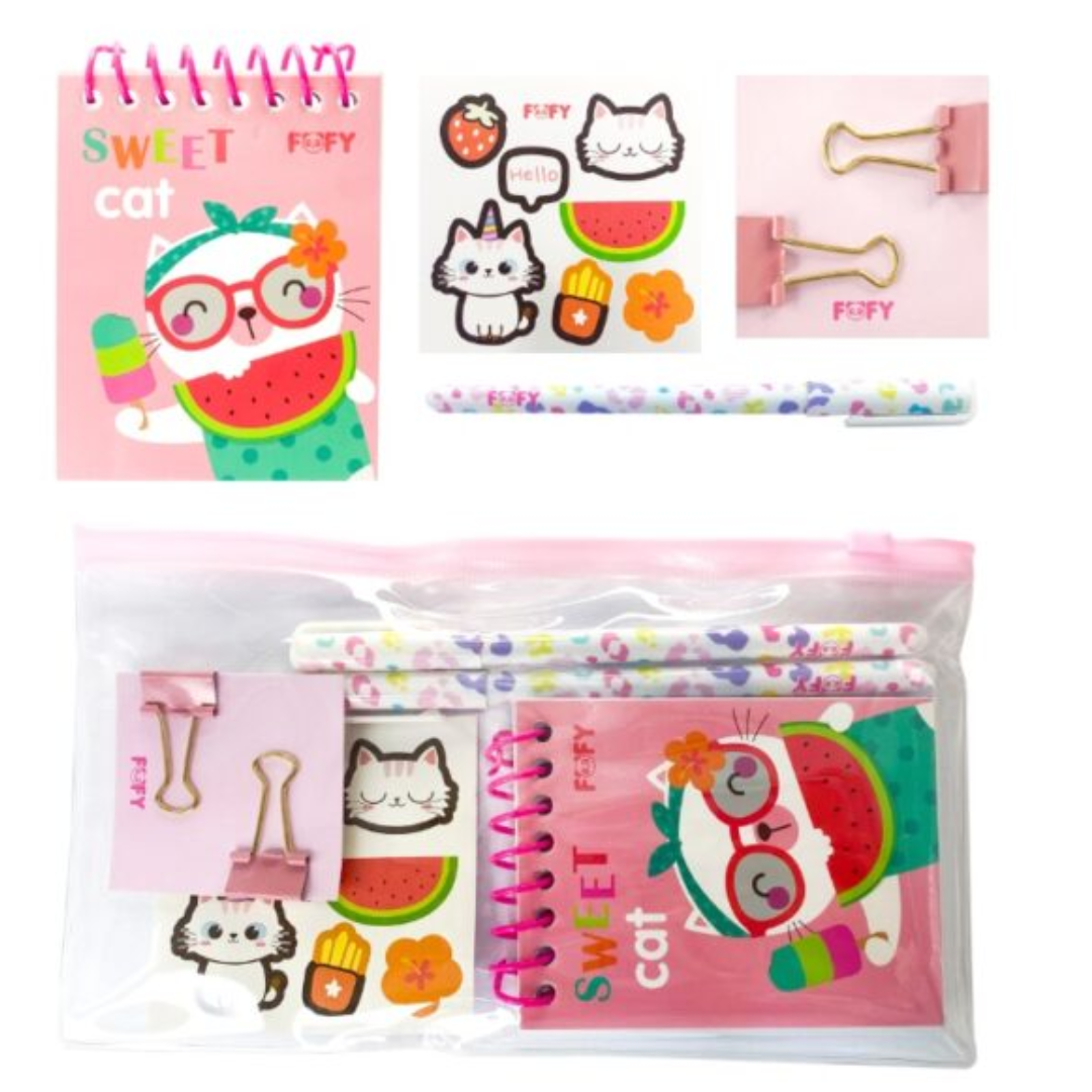 Kit Papelaria Fofy Sweet Cat - Conjunto Completo de Acessórios Fofos