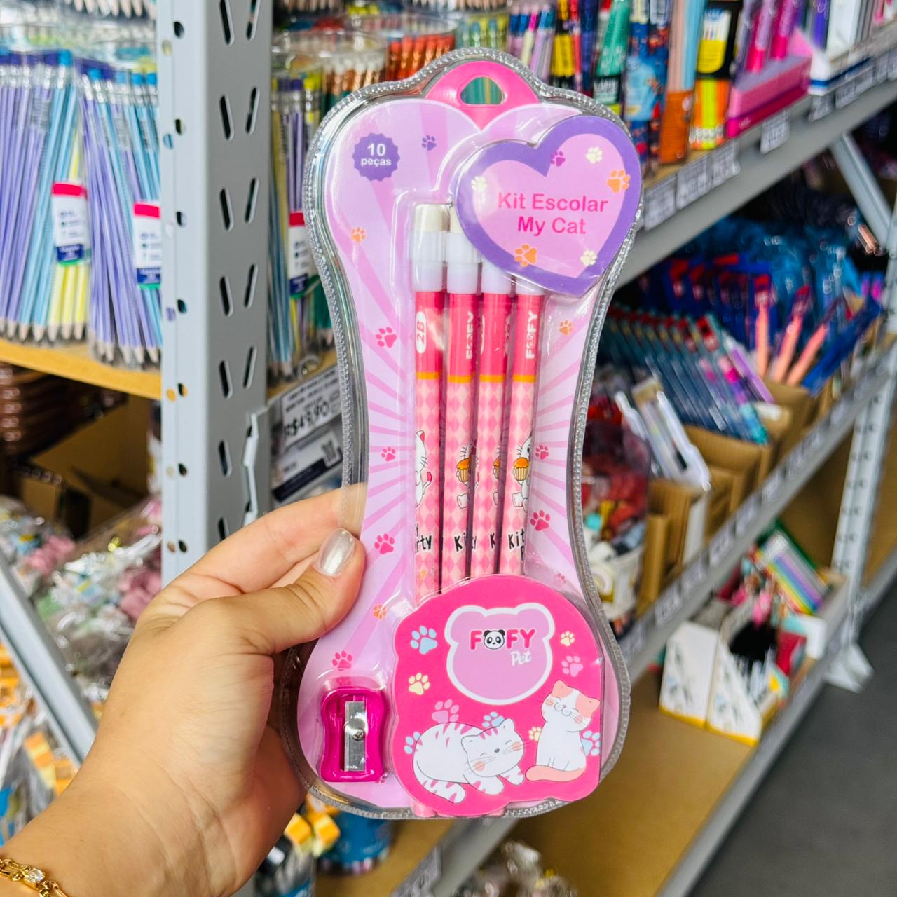 Kit escolar MY CAT ROSA - BLISTER 09 PEÇAS - FOFY