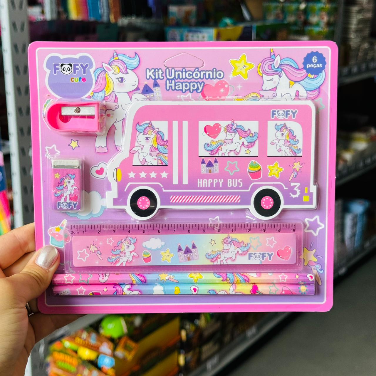 Kit escolar Unicórnio HAPPY - 6 PECAS - FOFY