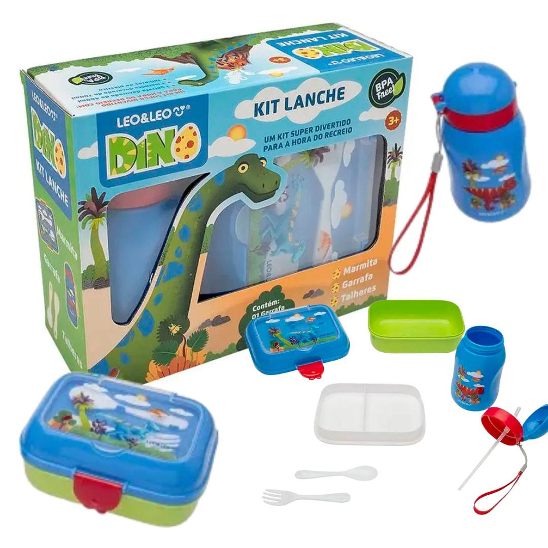 O Kit Lanche Dino Leo&Leo vem com uma garrafinha com canudo de 460 ml, uma marmitinha com tampa e divisórias de 700 ml, um garfo e uma colher de plástico. Tudo isso com estampas divertidas e coloridas de dinossauros para estimular a imaginação das crianças. Além disso, ele é fácil de limpar e armazenar, podendo ser levado na mochila ou na lancheira. Com o Kit Dino, a hora do recreio é recheada de diversão e boas vendas. Aproveite.
