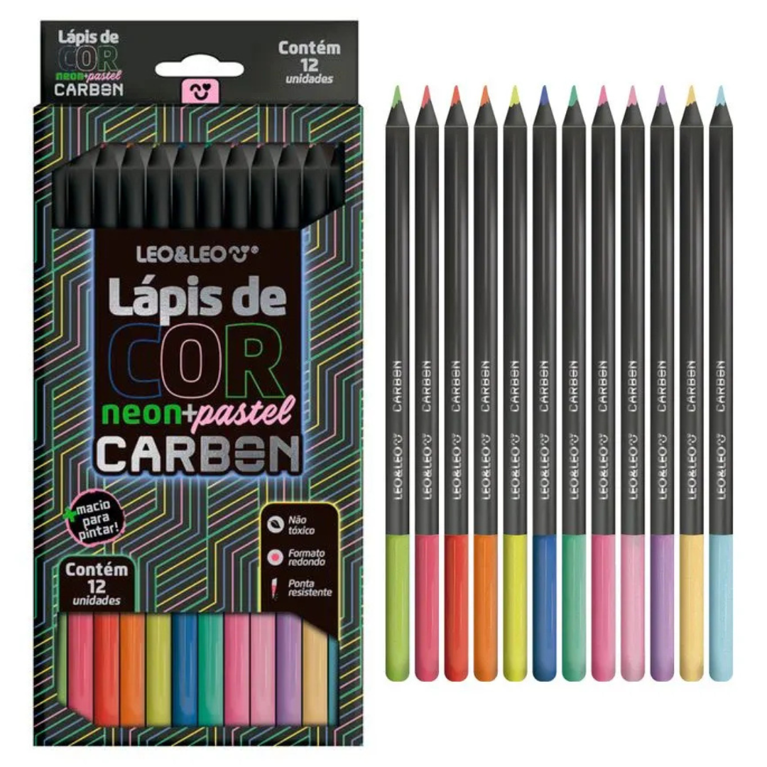 E para levar a criatividade ainda mais longe, apresentamos uma caixa exclusiva com tons neon + pastel. Os Lápis de Cor Carbon são mais macios para pintar, já que possuem alta pigmentação, o que garante cores vibrantes e resistentes. Além disso, eles têm um design moderno com corpo de madeira preta com dip colorido. O Lápis de Cor Carbon é atóxico, ou seja, 100% seguro para o uso infantil. Os lápis estão disponíveis no formato redondo e vêm com 12 cores diferentes. Garanta já. As cores vibrantes da linha Lápis de Cor Carbon estimulam até suas vendas.