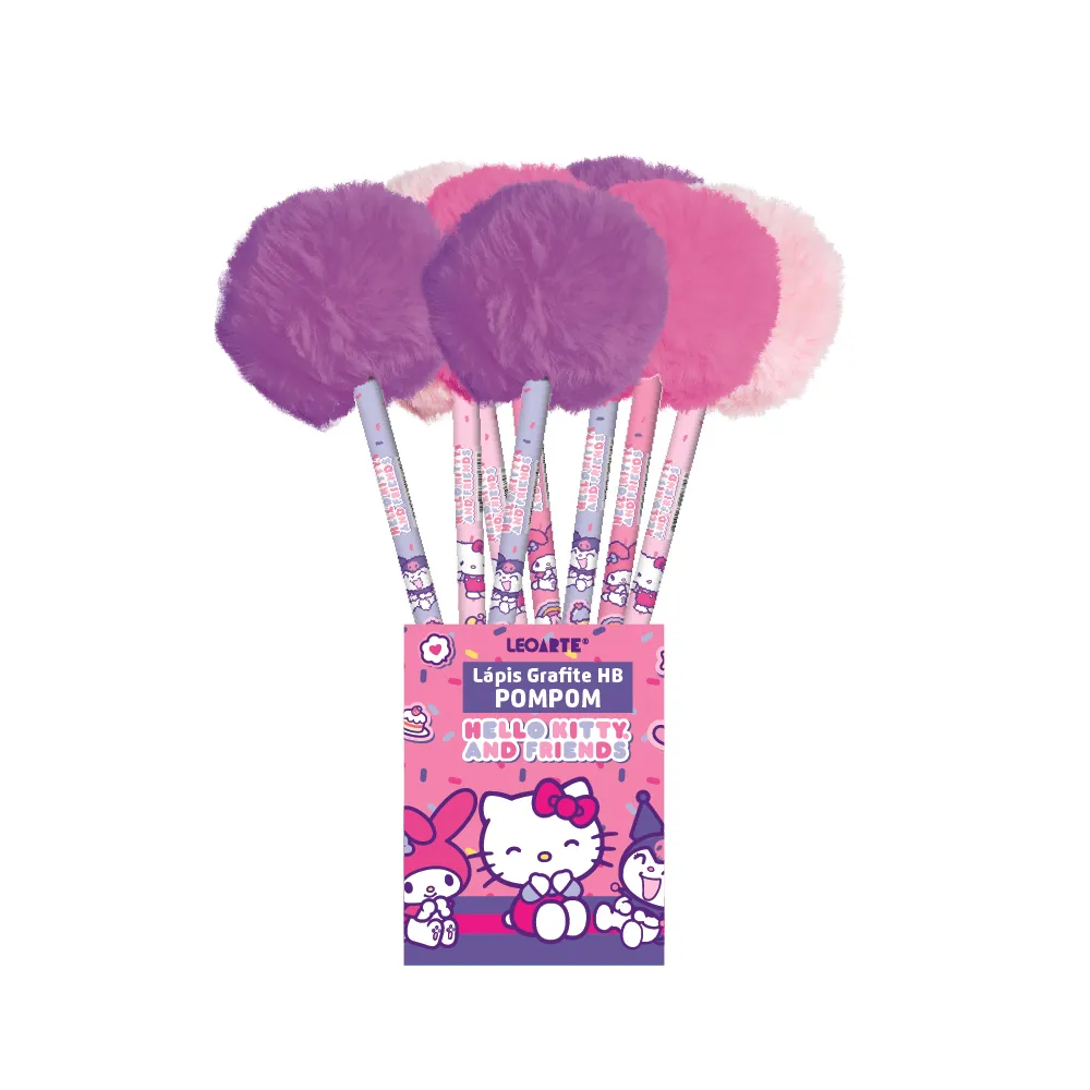 Escrever e desenhar com o Lápis Grafite HB Resina com Pompom Hello Kitty e Amigos - Pote com 24 Unidade LeoArte vai ser um estimulo a mais para a criançada.