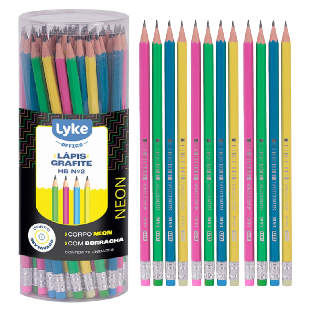 O Lápis Grafite HB nº 2 Neon LYKE possui borracha, é fácil de apontar e possui uma linda estampa. É ideal para fazer desenhos e para escrever em cadernos ou blocos de anotações. Pode ser utilizado em escritórios, ambiente escolar e ambiente doméstico.