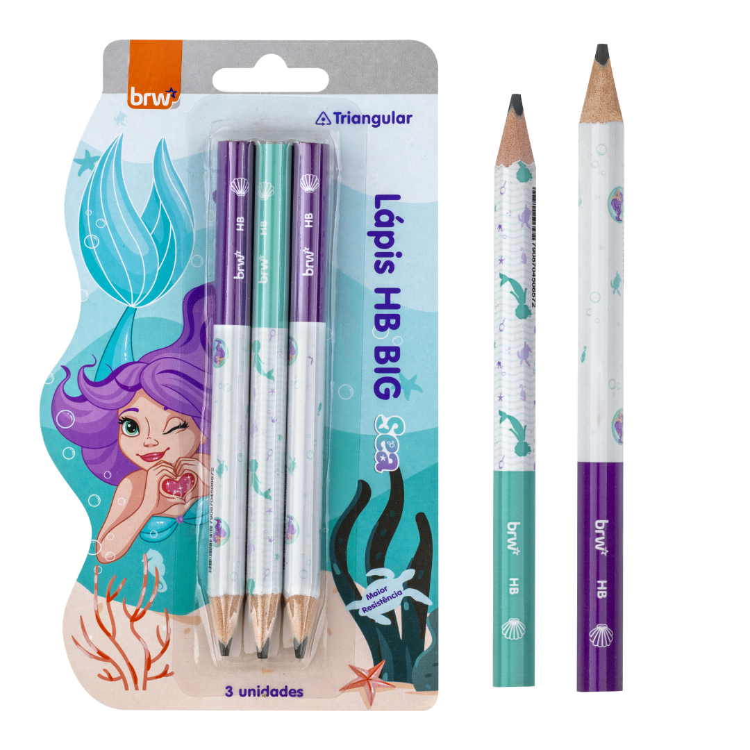 Lápis HB BIG ESTAMPADO SEA - RESINA TRIANGULAR - BLISTER C/ 3 UND - BRW
