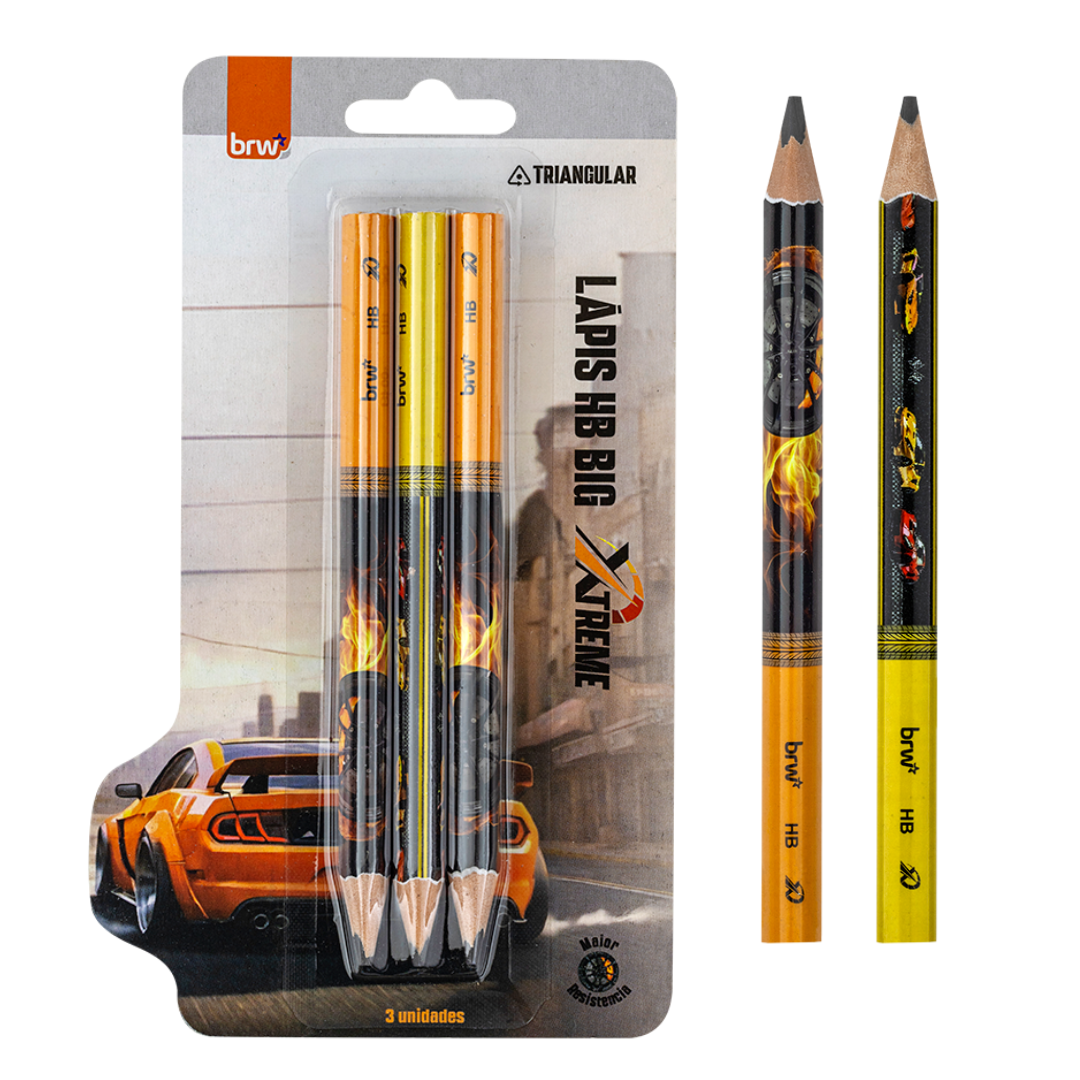 Lápis HB BIG ESTAMPADO XTREME - RESINA TRIANGULAR - BLISTER C/ 3 UND - BRW