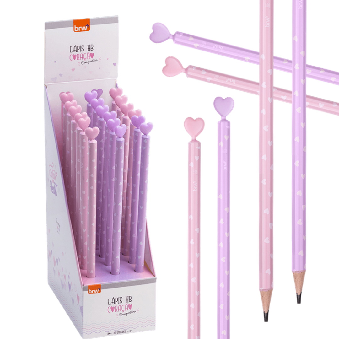 lápis HB C/ PONTEIRA CORAÇÃO - RESINA REDONDO - DISPLAY C/ 18UND - BRW