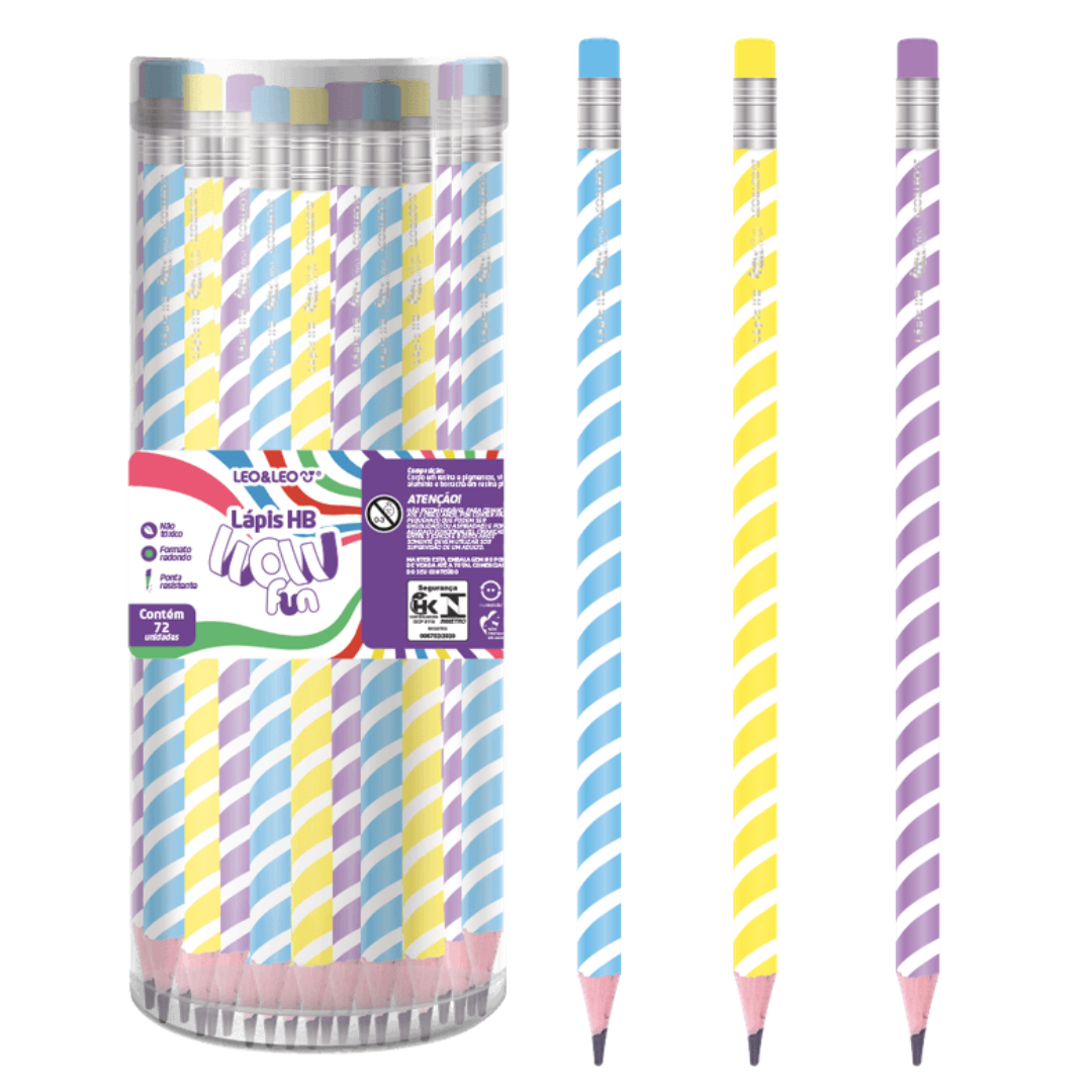 O lápis grafite é HB de resina e vem com borracha. Isso significa que é prático no uso e excelente para escrever ou criar mil desenhos e ilustrações que a criatividade proporcionar. O design moderno e colorido do corpo é um dos seus diferenciais, dando um toque a mais de alegria nas tarefas no escritório ou nos estudos da escola ou da faculdade.