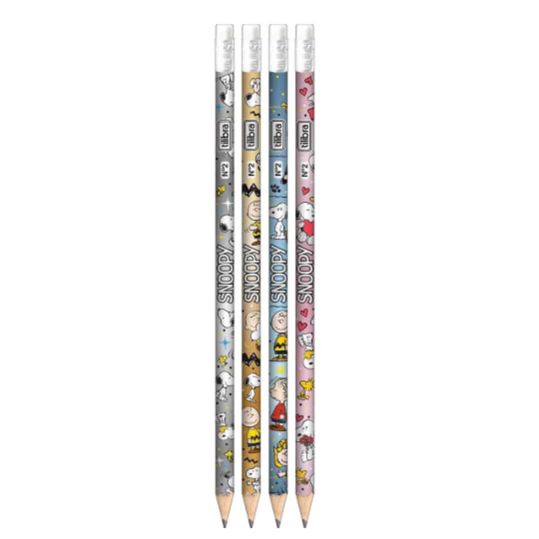 O lápis do Snoopy tem corpo redondo com acabamento metalizado, borracha na ponta e é perfeito para escrita suave e precisa.