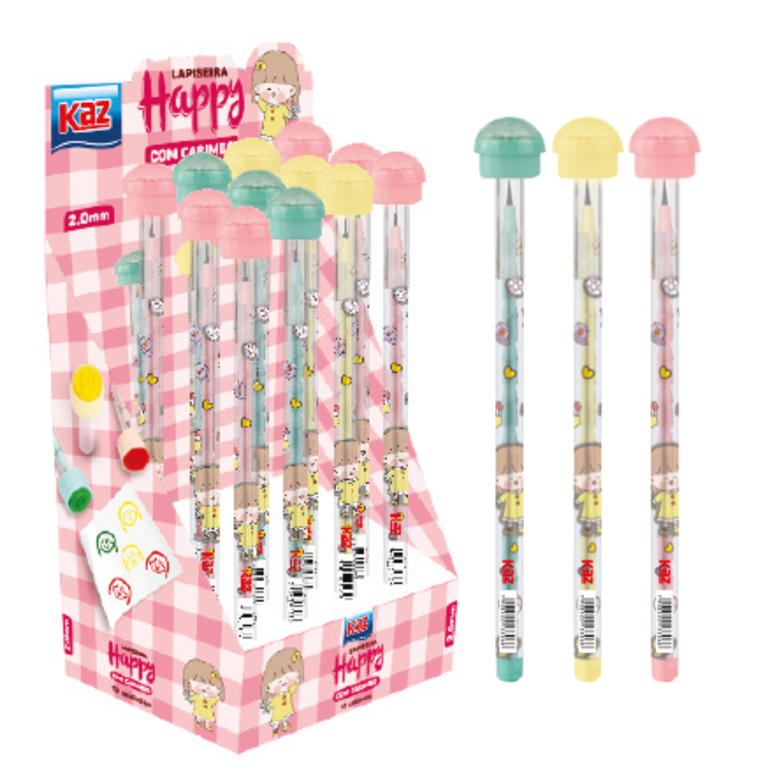 Lapiseira HAPPY 2.0MM COM CARIMBO - CAIXA 12 UND - KAZ