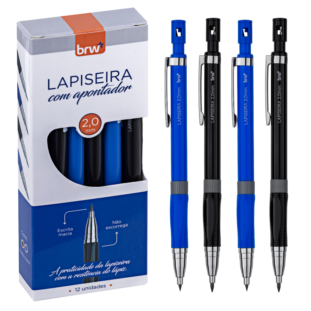 Lapiseira Plástica - 2.0MM PT + AZ - CAIXA C/ 12UND - BRW