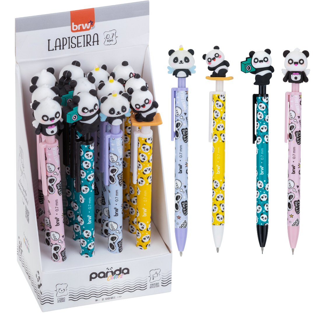 Lapiseira Plástica Divertida 0,7MM - Panda Colors - Display com 12 Unidades