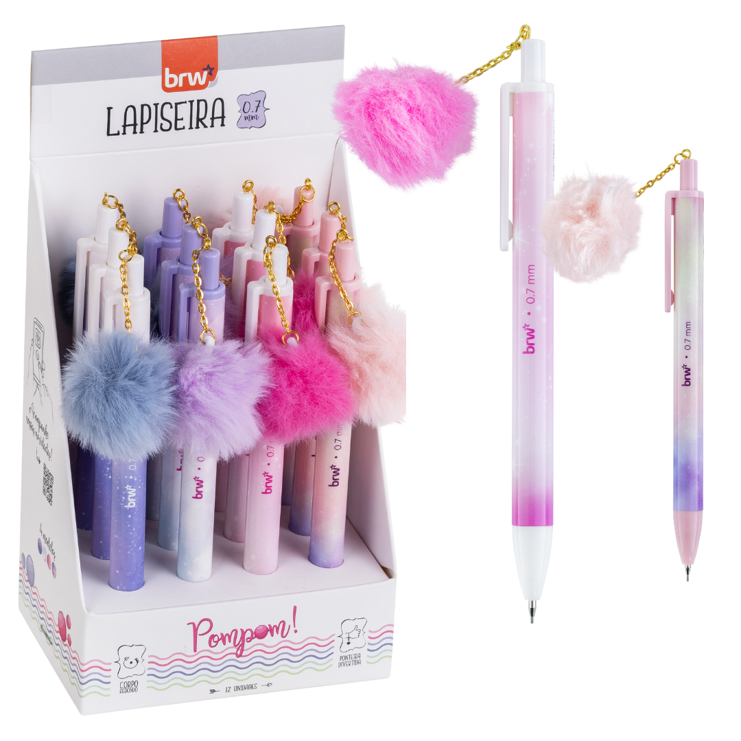 A lapiseira Pompom da BRW é a combinação perfeita de fofura e estilo! Cada lapiseira vem com um charmoso pompom de pelúcia pendurado, tornando seu material escolar ainda mais divertido e personalizado. Disponível em tons delicados de rosa, lilás e azul, ela é a escolha ideal para quem busca praticidade com um toque de glamour.