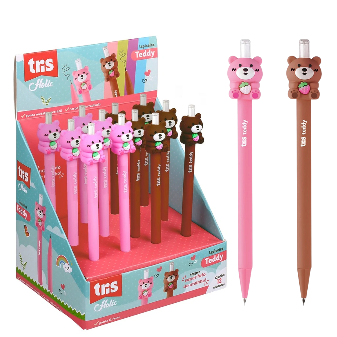 Formatos divertidos e estampas encantadoras: a coleção Fofurices conta com produtos tão fofos que é impossível não se apaixonar! A lapiseira Teddy tem corpo emborrachado e confortável, com toppers super fofos de ursinhos! Seu traço é 0,7mm e está disponível em duas cores: rosa e marrom!