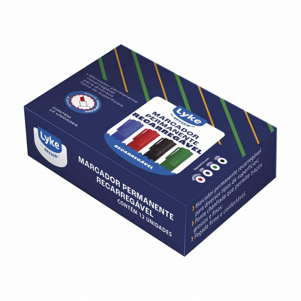 Composição: Resina termoplástica, ponta de feltro e tinta a base de corantes e solventes.
