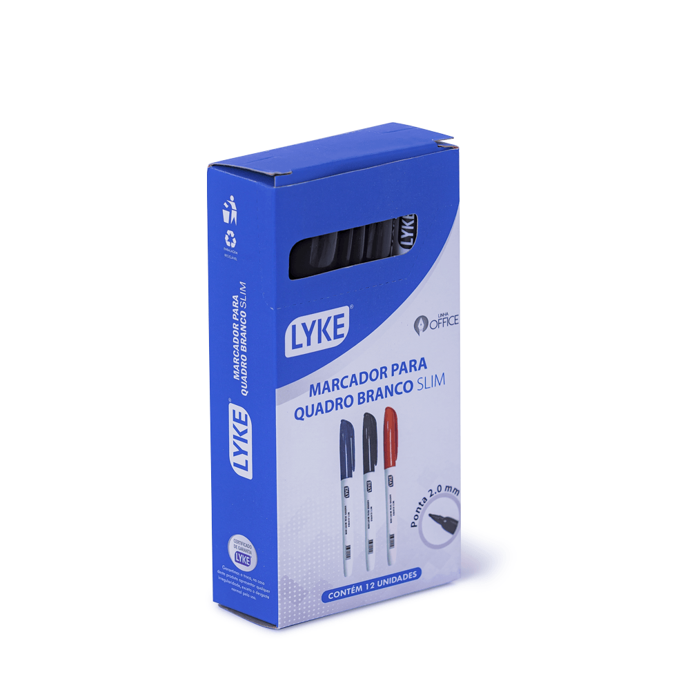 Marcador para Quadro Branco Slim, Preto, possui sua ponta redonda que proporciona melhores traços e visibilidade quando utilizado em grandes espaços. É ideal para uso didático e apresentações.