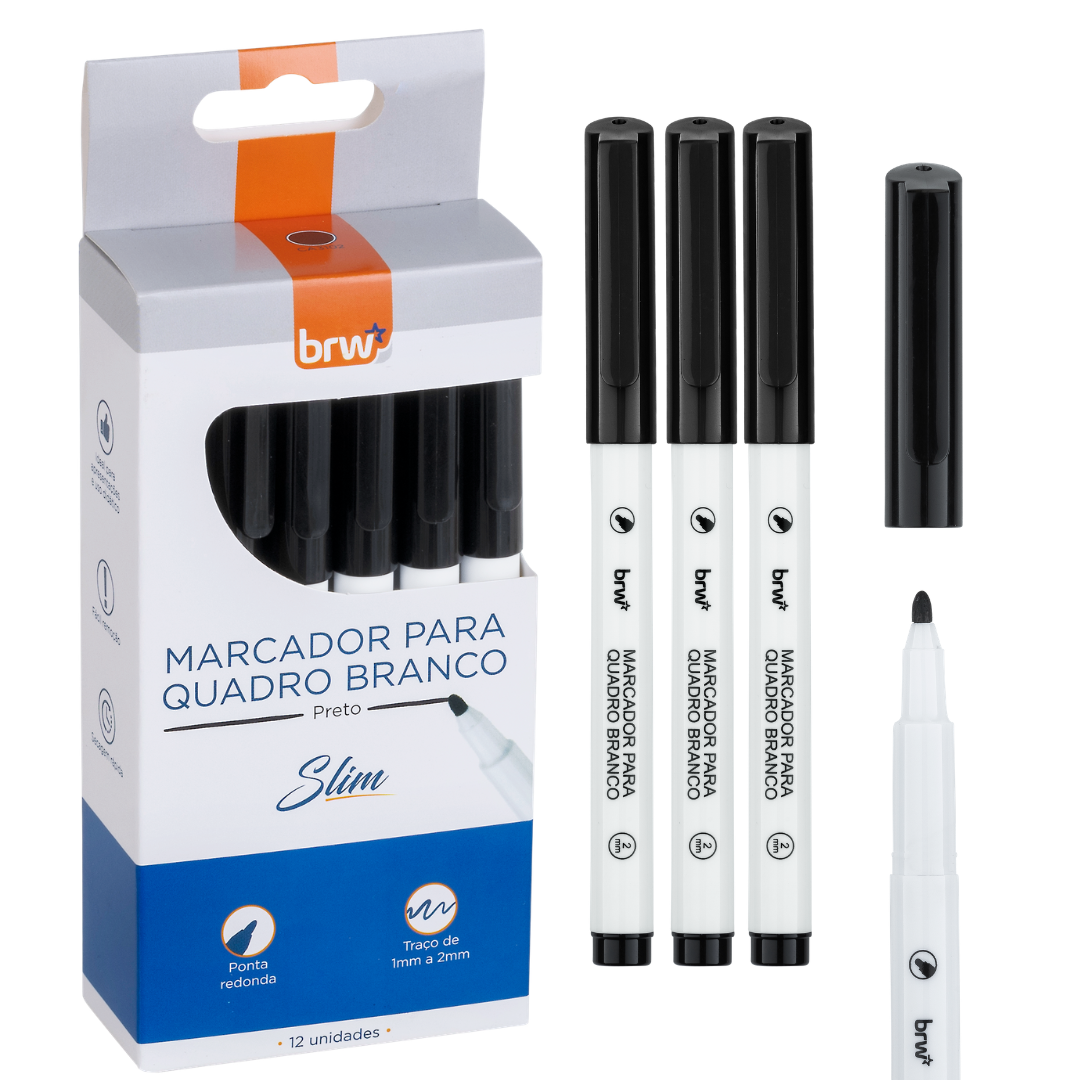 Marcador Quadro Branco SLIM PRETO - CAIXA C/ 12UND - BRW