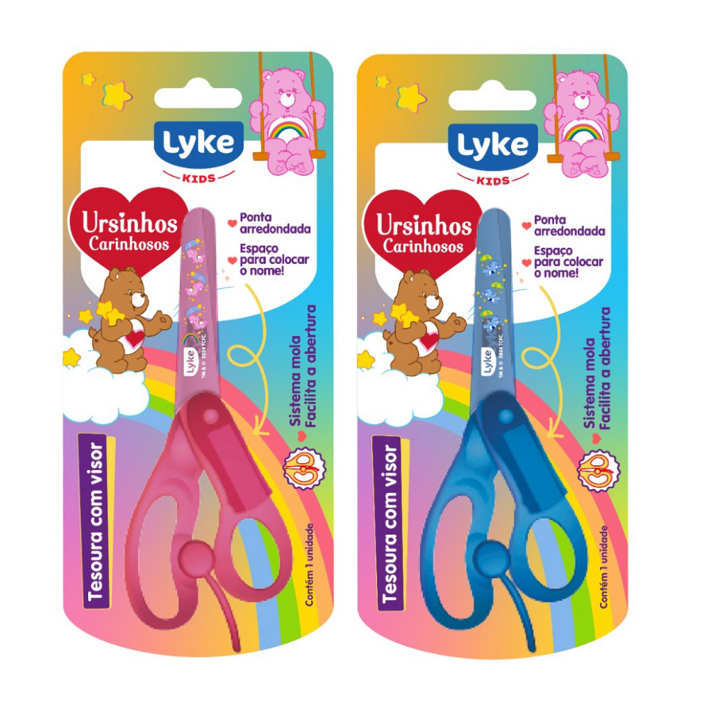 Tesoura Escolar com Visor - 13cm - Ursinhos Carinhosos - Blister c/ 1 unidade
